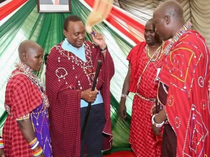 President Uhuru Kenyatta in Maasai attire during the ordination of